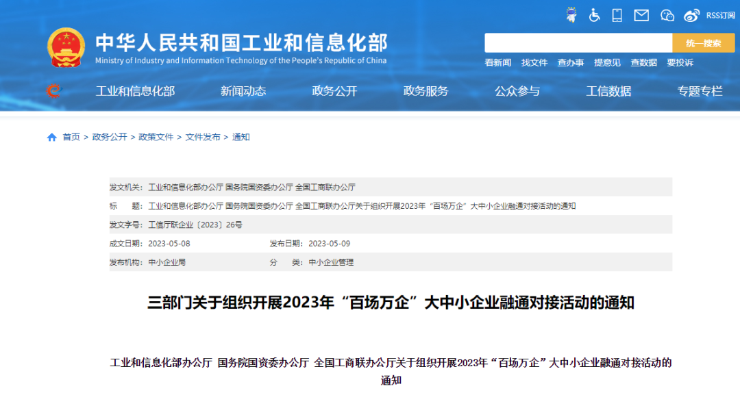 日前,工信部網(wǎng)站發(fā)布三部門關(guān)于組織開展2023年“百場(chǎng)萬企”大中小企業(yè)融通對(duì)接活動(dòng)的通知。