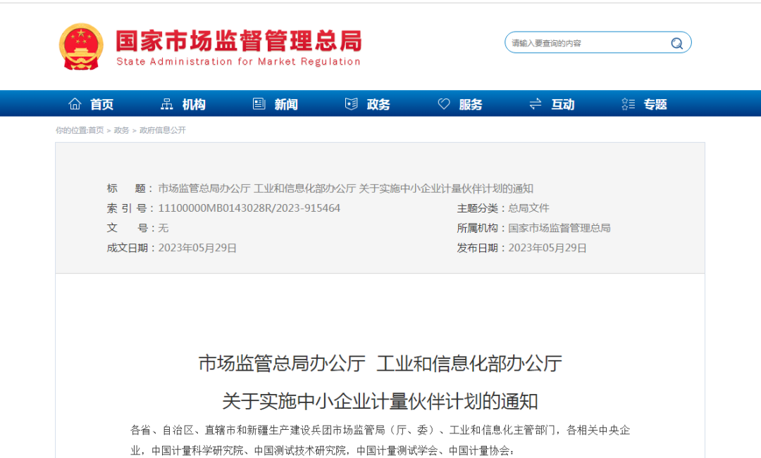 近日,市場監(jiān)管總局、工業(yè)和信息化部聯(lián)合發(fā)布《關(guān)于實施中小企業(yè)計量伙伴計劃的通知》(以下簡稱《通知》)。通知明確,切實發(fā)揮大企業(yè)計量引領(lǐng)帶動作用,倡議并帶動中小企業(yè)參與計量伙伴計劃。到2025年,引導100家大企業(yè)倡議帶動中小企業(yè)實施計量伙伴計劃,推動形成計量資源充分共享、計量活動有效銜接、計量能力協(xié)同推進的大中小企業(yè)計量融通創(chuàng)新生態(tài),有力支撐產(chǎn)業(yè)鏈供應鏈補鏈固鏈強鏈。